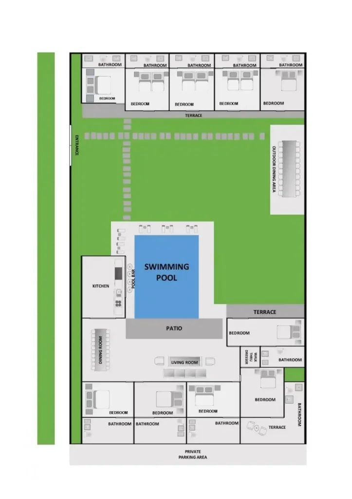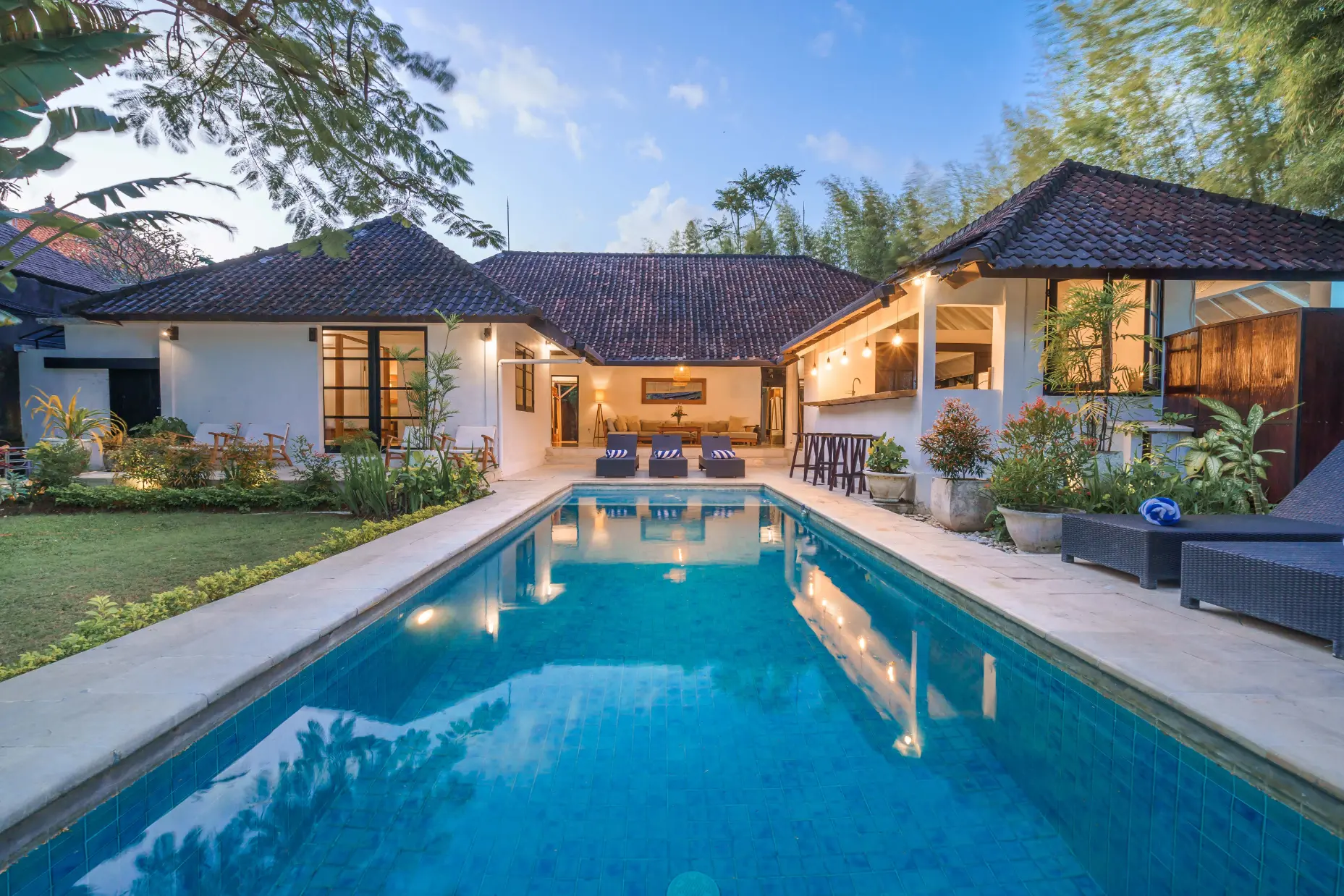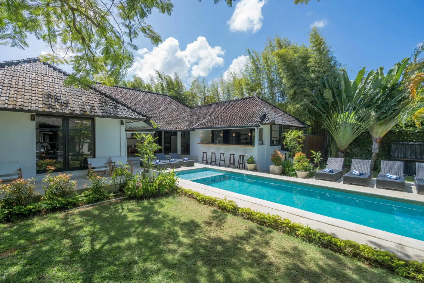 Sitting on a massive lush green property, the Aryana Estate lies at the end of a quiet and serene laneway. Just a short walk away from the most popular hotspots in Bali such as Potato Head Beach Club, Ku De Ta, the W Hotel, The Forge Gastropub & 24-hour sports bar and delicious Pison Café. The estate is also close to Seminyak’s beautiful beaches and Indian Ocean as well as ‘Eat Street’ with all its restaurants to suit all tastes and ages (Mamasan, Boy & Cow, Ultimos, Chandi, etc). The likes of Merah Putih, Sardine, and La Lucciola are either just a close easy walk or very short car journey away. The airport is just a 40 minutes drive.