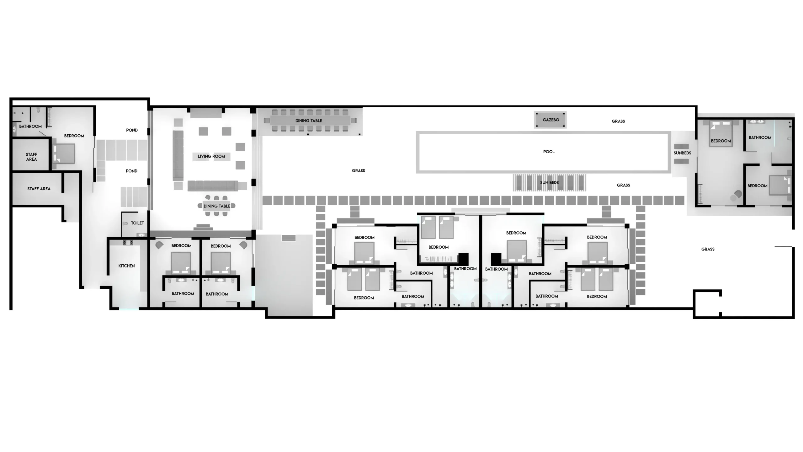 This beautiful villa estate offers 11 luxurious bedroom suites consisting of: