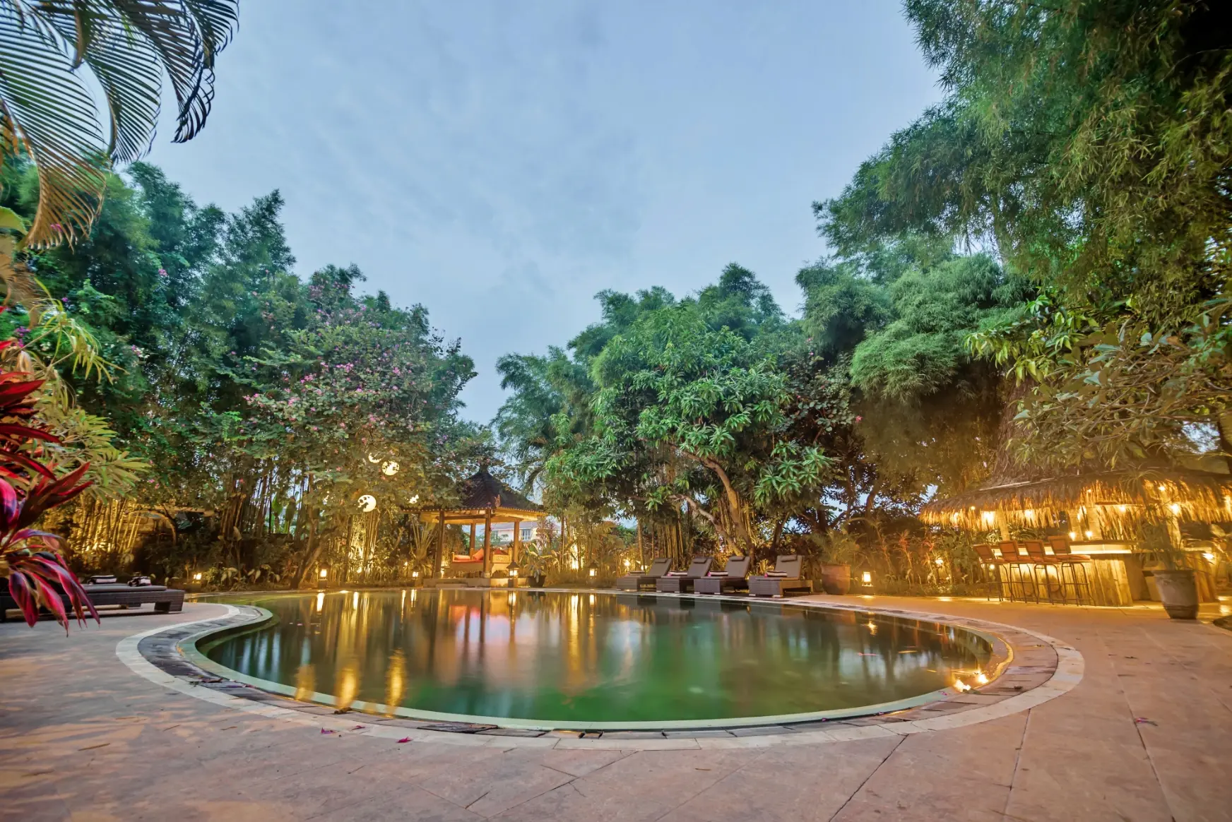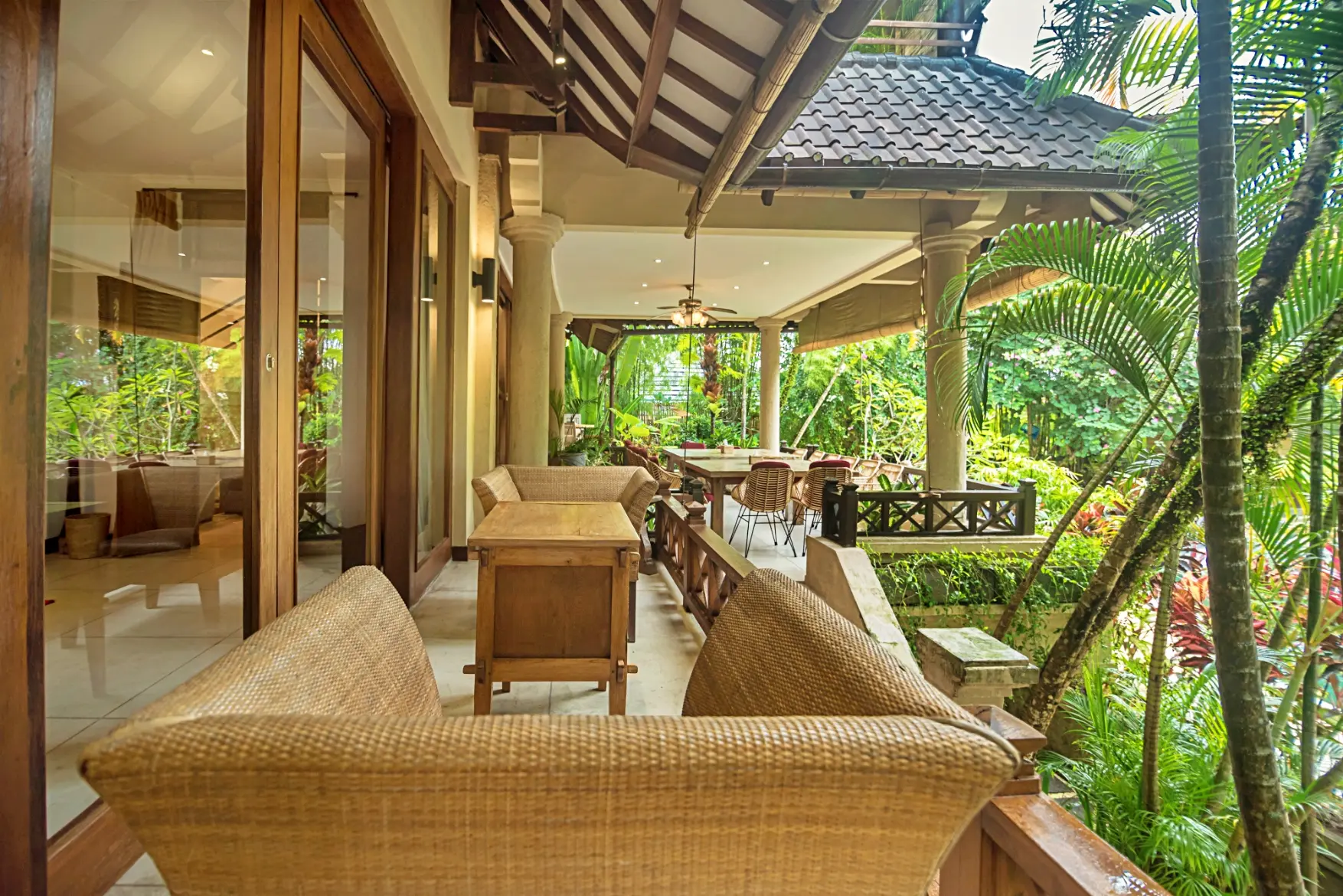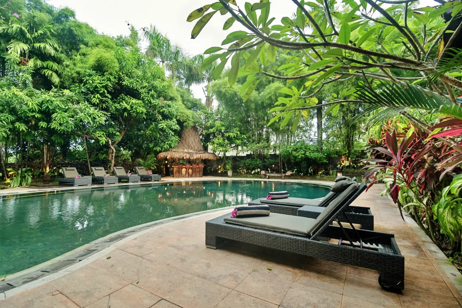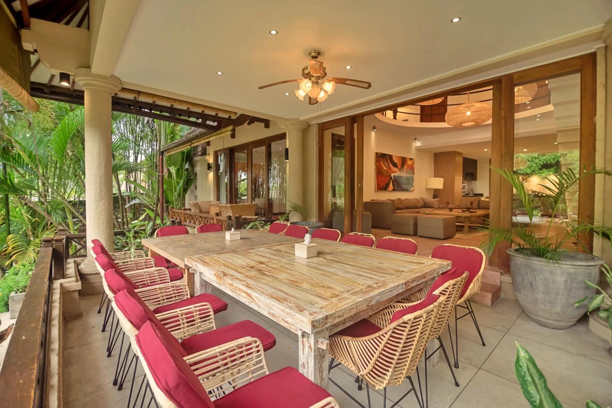 Rest assured there are lots of other interesting things for guests to do at the villa or nearby such as swimming or lazing in the huge 20m x 4m swimming pool, in-villa spa treatments, surf lessons, horse riding on the beach, cycling through the rice fields, boogy boarding in the nearby sea, Treetops Adventure Park, Waterbom Water Park, Elephant Park, etc. The comfortable Entertainment Room has a large LCD flatscreen TV, and Satellite TV with international channels.