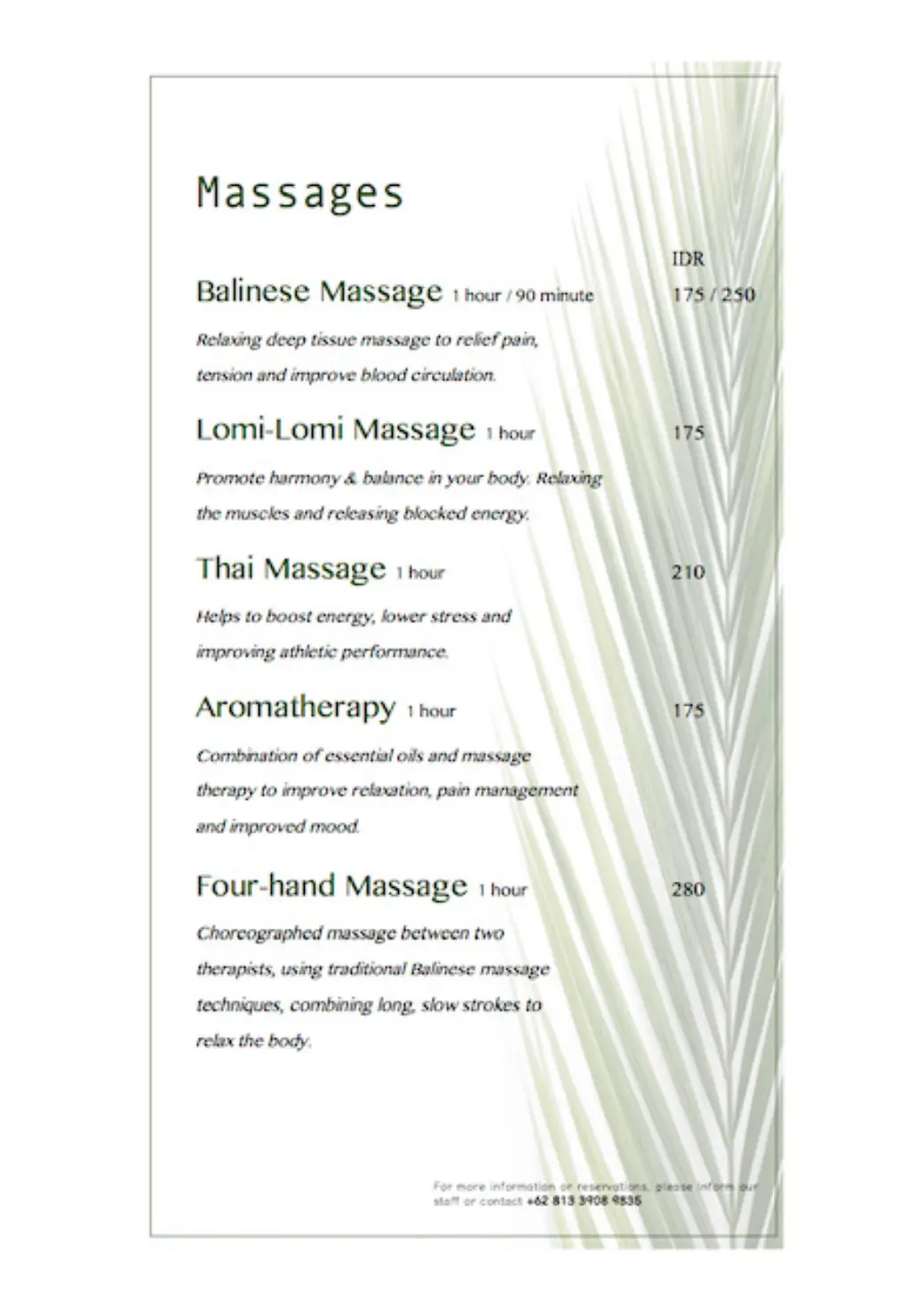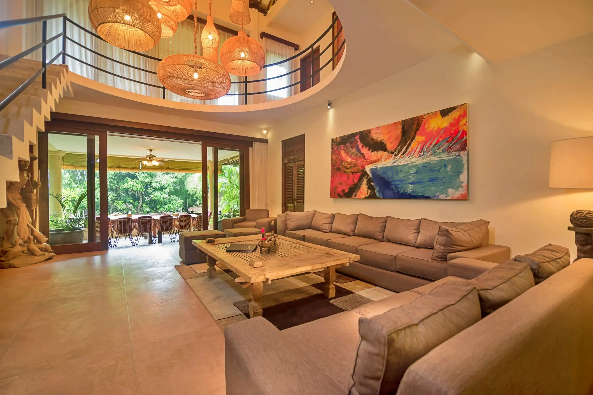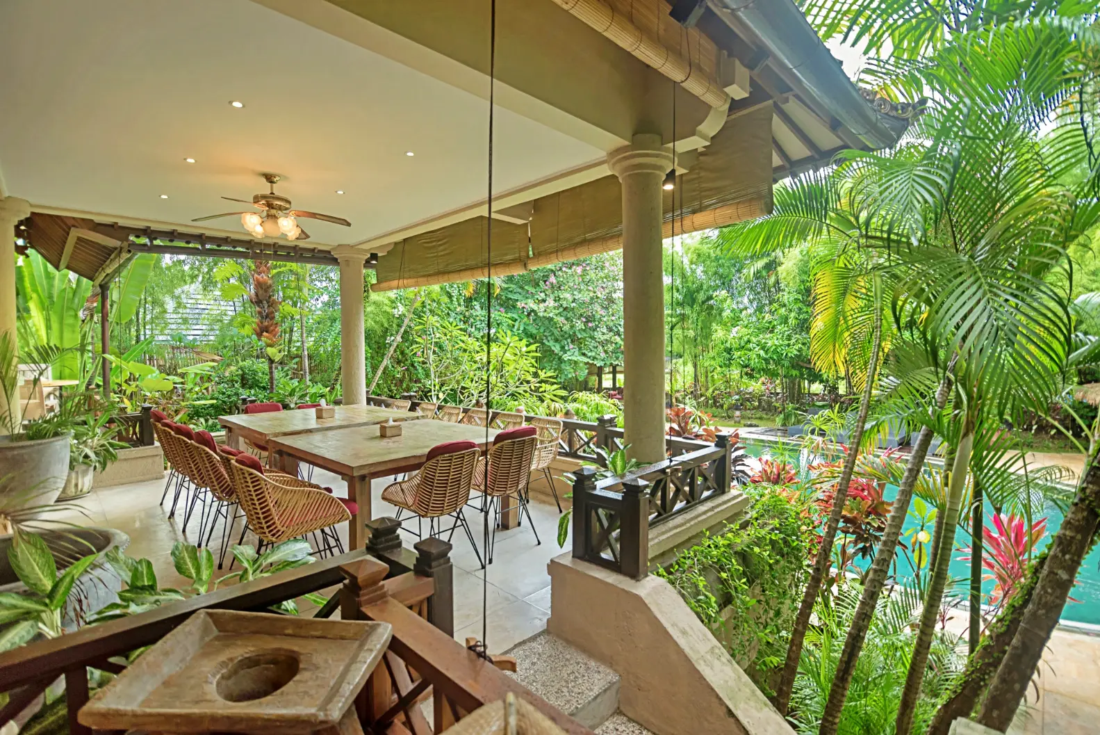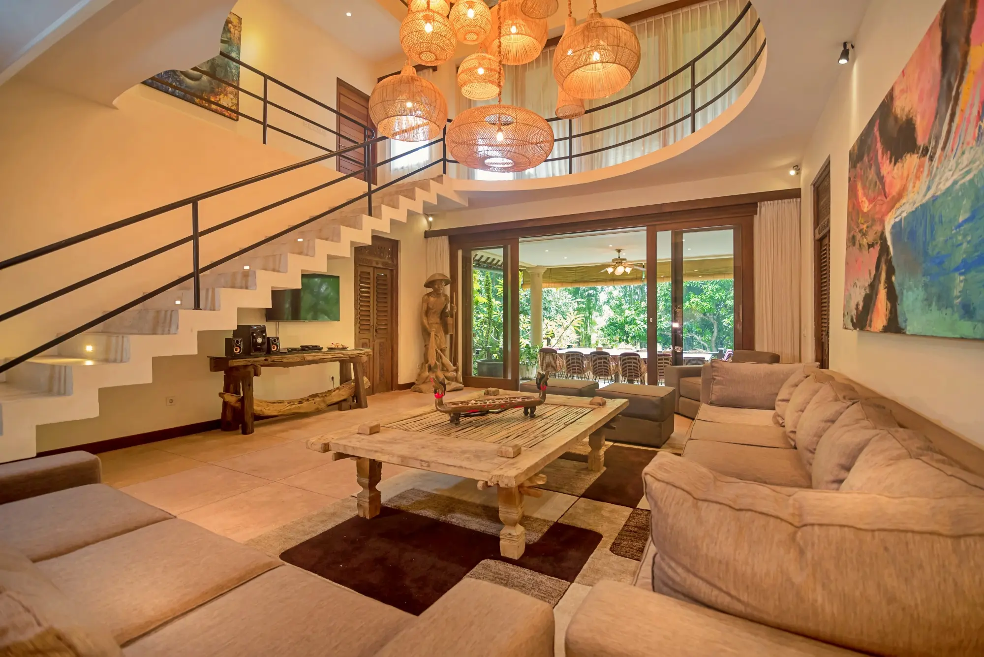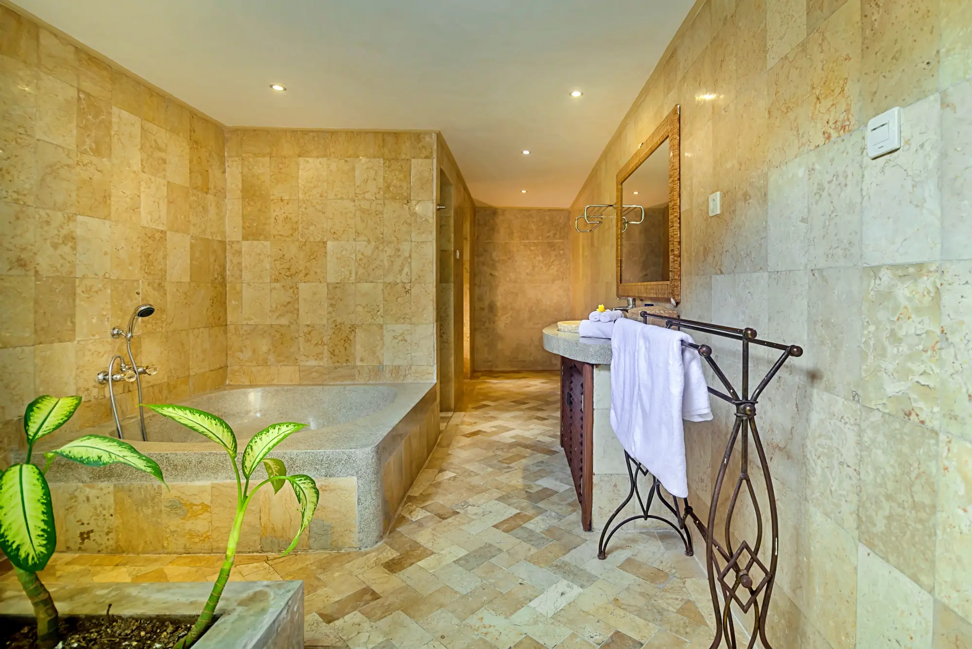 Rest assured there are lots of other interesting things for guests to do at the villa or nearby such as swimming or lazing in the huge 20m x 4m swimming pool, in-villa spa treatments, surf lessons, horse riding on the beach, cycling through the rice fields, boogy boarding in the nearby sea, Treetops Adventure Park, Waterbom Water Park, Elephant Park, etc. The comfortable Entertainment Room has a large LCD flatscreen TV, and Satellite TV with international channels.